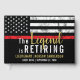 This design features a firemens flag with black and white stripes, and a thin red line stripe as well. "The Legend is Retiring" text sits above the name of the retiring firefighter, lieutenant, or chief's retirement party details. Celebrate this milestone in style!