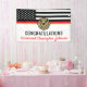 This design features a firemen's flag with black and white stripes, and a thin red line stripe as well. "Congratulations" and the fireman's badge text sits above the name of the graduating or retiring firefighter, lieutenant, or chief. Celebrate in style!