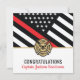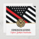 This design features a firemen's flag with black and white stripes, and a thin red line stripe as well. "Congratulations" and the fireman's badge text sits above the name of the graduating or retiring firefighter, lieutenant, or chief. Celebrate in style!