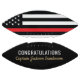 This design features a firemen's flag with black and white stripes, and a thin red line stripe as well. "Congratulations" sits above the name of the graduating or retiring firefighter, lieutenant, or chief. Celebrate in style!
