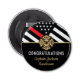 This design features a firemen's flag with black and white stripes, and a thin red line stripe as well. "Congratulations" and a fireman's badge sits above the name of the graduating or retiring firefighter, lieutenant, or chief. Celebrate in style!