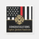 This design features a firemen's flag with black and white stripes, and a thin red line stripe as well. "Congratulations" and a fireman's badge sits above the name of the graduating or retiring firefighter, lieutenant, or chief. Celebrate in style!