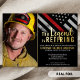 This design features a firemens flag with black and white stripes, and a thin red line stripe as well. "The Legend is Retiring" text sits above all of the party details for the retiring firefighter, lieutenant, or chief. Customise this design even further with a photo of the retiring firefighter.