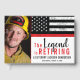 This design features a firemens flag with black and white stripes, and a thin red line stripe as well. "The Legend is Retiring" text sits above the name of the retiring firefighter, lieutenant, or chief. Celebrate in style! Customise even further with a photo of the retiring firefighter.