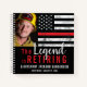 This design features a firemens flag with black and white stripes, and a thin red line stripe as well. "The Legend is Retiring" text sits above the name of the retiring firefighter, lieutenant, or chief. Celebrate in style! Customise even further with a photo of the retiring firefighter.