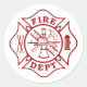 Fire Dept Maltese Cross Round Sticker, glossy the perfect giveaway item or collectable for any firefighter.