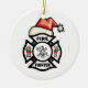 Firefighter Santa Claus Ceramic Tree Decoration