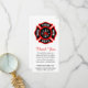 Maltese cross sympathy memorial thank you for firefighter- Reads "Thank You" in red with a message of gratitude below in script lettering. Option to change the sentiment to your own personalised words of thanks. Top has classic firefighting symbol, the Maltese cross in red, black and white with firefighter icons, such as helmet, ladder, axe, etc. The bottom reads 'From the Family of' with personalised fireman's name and dates below. Elegant memorial card to honour your hero and express thanks to friends and loved ones for their support and sympathy.