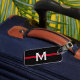 This luggage tag features a firefighter thin red line design with a horizontal red stripe on a black background and a monogram initial in white for you to personalise.