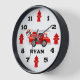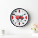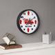 What child wouldn't love this Fire Truck themed wall clock? The design is set on a white background. There are thick black numbers and a bright red fire hydrant substituting for the twelve, three six and nine. In the centre of the clock there's a red fire truck with a "friend" sitting on the back; an adorable Dalmatian pup. The text can be customised. Clock frame are available in white, black and brown.