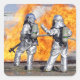 Firefighters battle a simulated fire square sticker