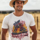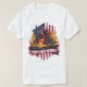 This custom t shirt features Illustration of firefighters battling a blaze in a car with the American flag in the background. symbolising bravery and heroism,