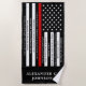 FIrefighter's Prayer Beach Towel in a modern thin red line American Flag in firefighter flag colours. This firefighter prayer beach towel is a unique gift and is perfect for all firefighters and fireman, fire academy graduation gift, and firefighter gifts. Personalise this firefighter prayer beach towel with your firefighters name . Firefighter Academy Graduate Prayer.