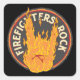 Famous hand gesture used at music concerts and known for rock and roll music is on fire with Firefighters Rock text on round logo. Firefighters Rock! gifts great for supporting your favourite firefighters!