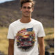 This custom t shirt features Firefighters stand in front of a fire truck with an American flag behind them. symbolising bravery and heroism,