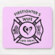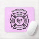 A fireman's wife is proud and part of the fire department tradition! Bonfire Designs features exclusive gift ideas and apparel for every firefighter's wife! Mouse pad is shown in pink with a firefighting logo, hydrant and ladder with a deco heart in the centre. Matching tote bags, coffee travel mugs and t-shirts available!
