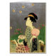 Mother and child, wearing patterned kimonos, catch fireflies by the side of a pond lined with reeds and flowers. The woman holds a fan and firefly cage while the child chases them, also holding a fan. A page of the series, 'Shiki no Bijin' (Beauties of the Four Seasons). From an original 18th century (1793) woodcut, 'Hotarugari' (Fireflies), by Eishosai Choki. All Rights Reserved © 2013 padre art