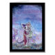 A peaceful and fun nighttime scene - A kitty with a jar of fireflies. This card is blank. Add your own message!