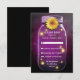 Whimsical Rustic Purple Mason Jar Wedding RSVP cards, with a night sky background, flying fireflies and daisy blossom accent.