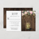 Rustic RSVPs featuring a mason jar filled with fireflies and sparkles with blush pink and gold watercolor flowers with fireflies sprinkled throughout over a barn wood background. If you would like this design on a matching product, or need help, please contact me through my store. There is a matching invitation available.