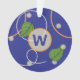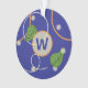 Glowing fireflies dance among floating leaves above a deep blue background. Orange and silver rings create an effect like stylised ripples to give the base a water-like feel. Customise the monogram on this ornament with your initial to make it your own.