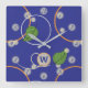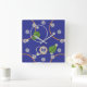 Glowing fireflies dance among floating leaves above a deep blue background. Orange and silver rings create an effect like stylized ripples to give the base a water-like feel. Customize the monogram on this clock to make it uniquely your own.