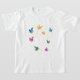 100% cotton so perfect for summer, It is a nicely designed t-shirt, the fabric is soft and the seams finished well, the body of the t shirt has no side seams. I bought a medium size for my two grandsons, aged 9 and 8 it will be slightly big on them but I would rather that than too small