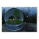 Inside a "snow globe" is a summer landscape with a cottage overshadowed by maple and cherry trees. The surrounding grassy field is filled with lilies and wildflowers in bright colours. Roses and ivy climb the wall of the little house. It's an evening in early summer, and the lights of a thousand fireflies fills the globe, while the warm beams from inside the cottage light up the surrounding landscape.