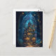 AI generated fantasy digital art postcard features a magical village for fireflies in a glass bottle.