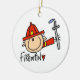 Fireman T-shirts, hoodies, sweatshirts, mugs, magnets, cards, stickers, tote bags, keychains, buttons, and other fireman apparel and gifts featuring a stick figure fireman holding a water hose, dressed in a red hat and firefighter coat.