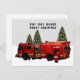 Creative fireman Christmas holiday postcards featuring fire engine, Santa Claus firefighter and funny line.