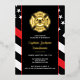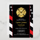This design features a firemen's flag with black and white stripes, and a thin red line stripe as well. A fireman's badge sits above all of the party details for the retiring firefighter, lieutenant, or chief's retirement party.