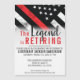 This design features a firemens flag with black and white stripes, and a thin red line stripe as well. "The Legend is Retiring" text sits above all of the party details for the retiring firefighter, lieutenant, or chief.