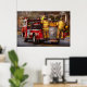 Metuchen, NJ - The firefighters still ride on the back of trucks here. It's far more efficient than opening a door. They of course have the mascot on the roof, who needs a Dalmatian when they have a sloppy bulldog on board. This would make a great gift for any fireman or firewoman. It would make a great addition to any firehouse.