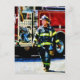 Are you looking for a gift for a fire fighter? This design of a fireman standing by his fire truck would be a perfect choice and make a great gift.