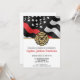 This design features a firemen's flag with black and white stripes, and a thin red line stripe waving in the wind. A fireman's badge sits above all of the party details for the retiring firefighter, lieutenant, or chief's retirement party.