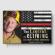 This design features a firemens flag with black and white stripes, and a thin red line stripe as well. "The Legend is Retiring" text sits above the name of the retiring firefighter, lieutenant, or chief. Celebrate in style! Customise even further with a photo of the retiring firefighter.