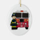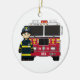 Adorably Cute Firefighter and Fire Engine Ornament.