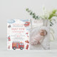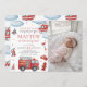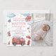 A charming firetruck-themed first birthday invitation featuring watercolor fire engines, firefighter gear, a rescue helicopter, and fun red accents—combined with space for your child’s photo. Perfect for a little firefighter’s birthday party and fully customizable with your details. Great for fire station parties, rescue-themed celebrations, and printable or digital sharing.