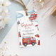 Cute firetruck birthday party napkin featuring watercolor fire engine, rescue helicopter, clouds, and fun emergency-themed details. Perfect for a firefighter or firetruck-themed first birthday celebration. Personalized with your child’s name and matching party decorations. Ideal for boys’ birthday parties, fire station themes, and rescue vehicle party supplies.