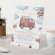Firetruck-themed birthday time capsule sign featuring watercolor fire engine, helicopter, clouds, extinguisher, megaphone, axe, hydrant, and safety cones. Perfect for a firefighter or firetruck first birthday party. Guests can leave wishes, predictions, and heartfelt messages for Mattew to open on his 18th birthday. A charming keepsake sign that coordinates with matching firetruck invitations, thank you cards, banners, and party decorations.