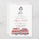 Adorable firefighter themed baby shower invitation with fire truck and dog.
