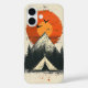 A lone tent sits under a massive red moon in a moody forest scene—ideal for outdoor lovers and adventure seekers.