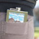 The flask itself is fine. It’s a cheap flask, obviously bought in bulk, however am prepared to overlook that. Given that it is a personalized item, I would have liked to have seen gift boxing instead of the generic packaging. Terrible printing, and/or quality. It’s a cheap, tacky vinyl. It is not cut straight and is also applied in a way that it is overhanging the bottom, causing the glue to catch on items and it will eventually roll and tear, damaging the wrap.
