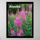 Features a digital painting of Fireweed (Epilobium augustifolium). The species name angustifolium is a portmanteau of the Latin words angusti meaning ‘narrow’, and folium meaning ‘leaf’. It shares this name with other species of plant including Vaccinium angustifolium. In mid to late summer Fireweed begins blooming in the middle of the stalk, with each successive flower blooming just above the one before it. When the last flowers bloom, at the top of the stalk, it is considered a sign that summer, or tourist season, has ended. At that time the earliest blooms seed and turn to cotton. When the fireweed turns to cotton, Alaskans say there are about six weeks until winter begins. Fireweed is often seen in open fields, pastures, and particularly burned-over lands; the common name Fireweed derives from the species’ abundance as a coloniser on burnt sites after forest fires. As a pioneer species it quickly colonises open areas with little competition, makes it a clear example of a pioneer species. Plants grow and flower as long as there is open space and plenty of light, as trees and brush grow larger the plants die out, but the seeds remain viable in the soil seed bank for many years, when a new fire or other disturbance occurs that opens up the ground to light again the seeds germinate. Some areas with heavy seed counts in the soil, after burning, can be covered with pure dense stands of this species and when in flower the landscape is turned into fields of colour. In Britain the plant was considered a rare species in the 18th century; confined to a few locations with damp, gravelly soils. The plant’s rise from local rarity to widespread weed seems to have occurred at the same time as the expansion of the railway network, and the associated soil disturbance. The plant became locally known as bombweed due to its rapid colonisation of bomb craters in the second world war. Reddish stems are usually simple, erect, smooth, 1½–8 feet high with scattered alternate leaves. Reddish-brown seed capsules bear many minute brown seeds, about 300 to 400 per capsule and 80,000 per plant. The seeds have silky hairs to aid wind dispersal and are very easily spread by the wind, often becoming a weed and a dominant species on disturbed ground. Once established, the plants also spread extensively by underground roots, an individual plant eventually forming a large patch. The leaves of Fireweed are unique in that the leaf veins are circular and do not terminate on the edges of the leaf, but form circular loops and join together inside the outer leaf margins. This feature makes the plants very easy to identify in all stages of growth. When Fireweed first emerges in early spring, it can closely resemble several highly toxic members of the lily family, however, it is easily identified by its unique leaf vein structure. The young shoots were often collected in the spring by Native American people and mixed with other greens. As the plant matures the leaves become tough and somewhat bitter. The southeast Native Americans use the stems in the stage. They are peeled and eaten raw. When properly prepared soon after picking they are a good source of vitamin C and pro-vitamin A. The Dena’ina add fireweed to their dogs’ food. Fireweed is also a medicine of the Upper Inlet Dena’ina, who treat pus-filled boils or cuts by placing a piece of the raw stem on the afflicted area. This is said to draw the pus out of the cut or boil and prevents a cut with pus in it from healing over too quickly. The root can be roasted after scraping off the outside, but often tastes bitter. To mitigate this, the root is collected before the plant flowers and the brown thread in the middle removed. In Alaska, candies, syrups, jellies, and even ice cream are made from fireweed. Monofloral honey made primarily from fireweed nectar has a distinctive, spiced flavour. In Russia, its leaves were often used as tea substitute and were even exported, known in Western Europe as Kapor tea. Fireweed leaves can undergo fermentation, much like real tea. Today, Kapor tea is still occasionally consumed though not commercially important.
