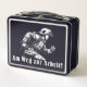 This is a standard metal lunchbox that appears to work just fine. We designed this box ourselves with an uploaded photo and custom text on the front and back. It looks absolutely beautiful except the front of the lunchbox is not centered like it shows in the photo. The print borders don't align with the inset flat part of the box where the preview photo online showed it perfectly centered in there. The back looks nice and centered though.