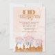 An Eid dinner invitation featuring a pink and brown colour with a mosque and firework celebration graphic. The card is easy to customise with your wording, paper shape options, and choice of paper types. The soft colour palette of the design looks stunning on the front while the brown contrasting backside makes this Eid party invitation truly unique.