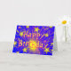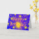 A firework exploding in a shower of dazzling gold and pink stars against a blue sky. Greetings card with a yellow, pink, blue and white customisable design for you to personalise with your own text, pictures and ideas. The text can easily be changed using the template provided or click the 'Customise It' button to make further alterations. Created using original photographs and digital techniques by Jess Perry.