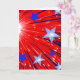A firework exploding in a shower of dazzling blue and white stars against a red and blue sky. Greetings card with a red, blue and white customisable design for you to personalise with your own text, pictures and ideas. Created using original photographs and digital techniques by Jess Perry.
