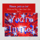 A firework exploding in a shower of dazzling blue and white stars against a blue sky. Invitation with a red, blue and white customizable design for you to personalise with your own text, pictures and ideas. The text can easily be changed using the template provided or click the 'Customize It' button to make further alterations. Created using original photographs and digital techniques by Jess Perry.